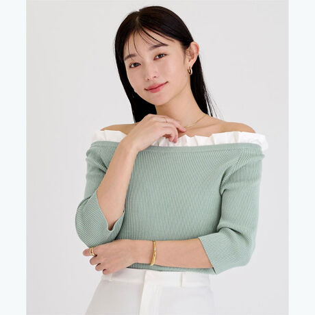 ネックラインにあしらったフリルが顔まわりを華やかに見せるトップス。肩を落としてオフショルダーとしても着られる2WAY仕様で、オン・オフ問わず着映えする一枚です。程よい長さのハーフスリーブが、二の腕をすっきり見せつつ軽やかな印象に仕上げます。[型番:BHXU1951]