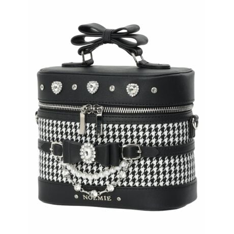 千鳥柄、リボン、ビジューの組み合わせが目を惹く、愛らしさ満点のバニティ風ショルダーバッグ。
