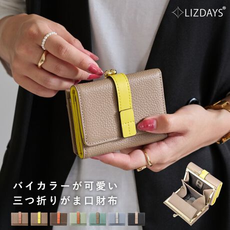 【LIZDAYS】財布 本革 レディース がま口 三つ折り