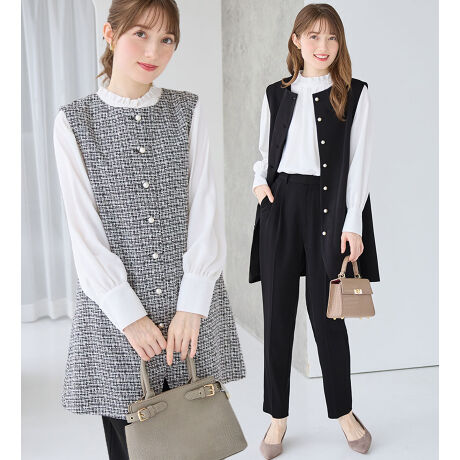 ・モノトーンツイードジレときれいめブラックジレの選べる2種類をご用意
