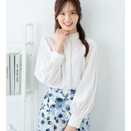 ・胸元にタックを施し、裾にかけてふわっと広がるシルエット