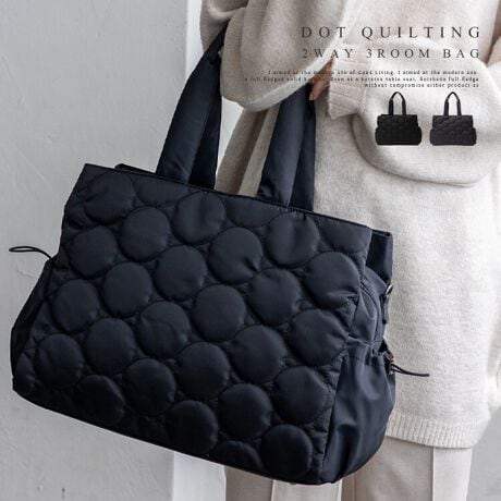 ドットキルティング2way3ルームバッグ【aroco/アロコ】