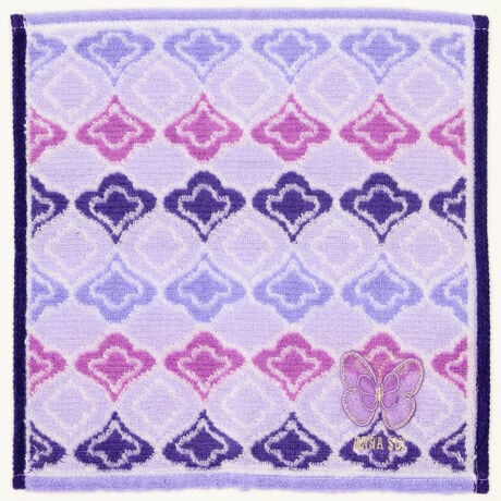 カラフルな織りにオーガンジーのアップリケを合わせた、大判サイズのタオルハンカチです。アップリケは立体パーツになっており、蝶々が羽ばたくようなキュートなイメージに仕上げました。