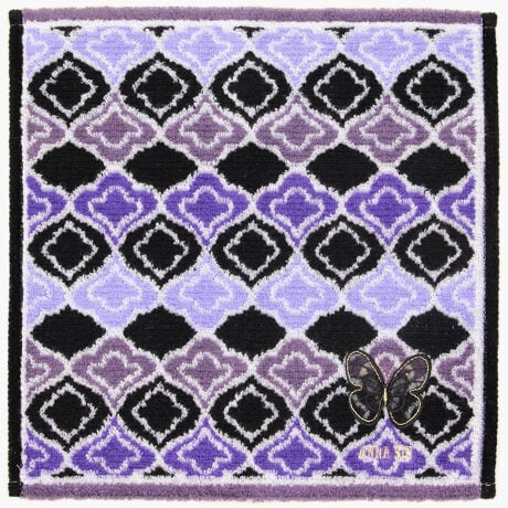カラフルな織りにオーガンジーのアップリケを合わせた、大判サイズのタオルハンカチです。アップリケは立体パーツになっており、蝶々が羽ばたくようなキュートなイメージに仕上げました。