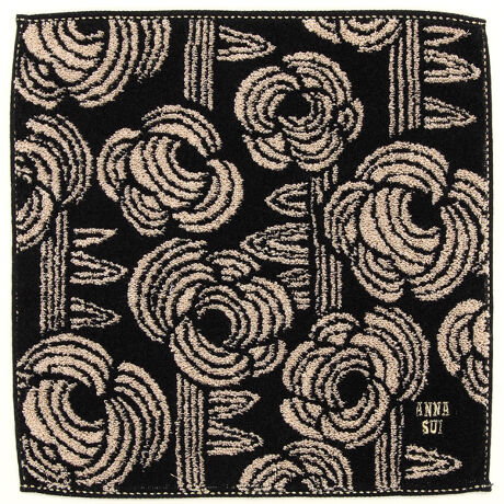キラキラとしたラメ糸を織り込んだ大判サイズのタオルハンカチです。大胆なローズがANNA SUIらしい1枚です。