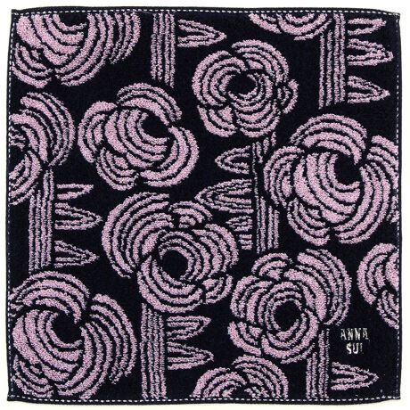 キラキラとしたラメ糸を織り込んだ大判サイズのタオルハンカチです。大胆なローズがANNA SUIらしい1枚です。
