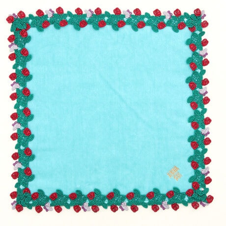 カラフルなレースが華やかなタオルハンカチ。オリジナルデザインのレースとフラットなシャーリング生地を組み合わせ、シンプルでありながらANNA SUIらしさが詰まった1枚に仕上げました。