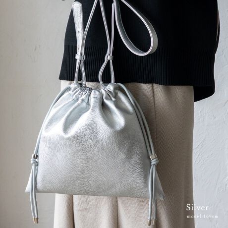 巾着を絞る紐を持ってハンドバッグとしてもお使いいただけます。