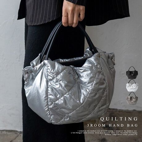 キルティング3収納ハンドバッグ【aroco/アロコ】