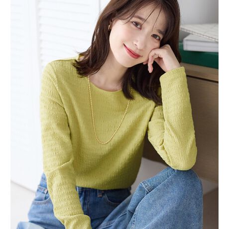 ・すっきりしたクルーネックデザインと少し長めの袖デザイン。素材感を際立たせるベーシックで使いやすいデザイン。