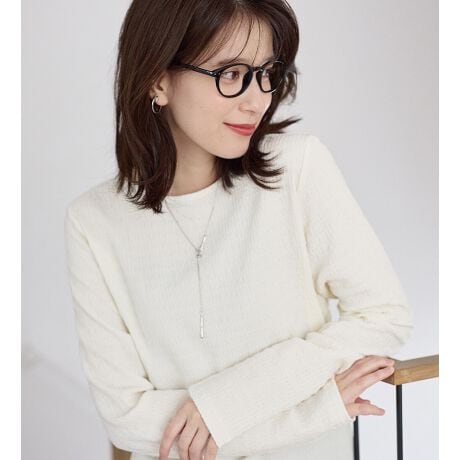 ・すっきりしたクルーネックデザインと少し長めの袖デザイン。素材感を際立たせるベーシックで使いやすいデザイン。