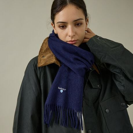 【BARBOUR / バブアー】から登場した、上質なラムウール100で仕立てたプレーンスカーフ。