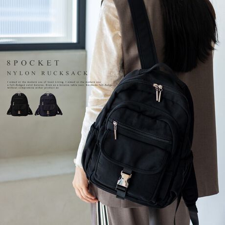 ほど良いツヤ感のある撥水ナイロンを使用した、軽量8ポケットミニリュック。