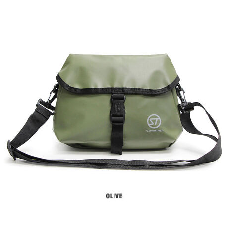 [型番:gfc-st-0414]防水性の強いターポリン生地を使用したショルダーバッグです。台形型のシンプルなデザインで見た目以上の収納力ですので、男女を問わずお使いいただけます。普段使いから釣りやバイク、自転車など様々なシーンに合せられるバッグです。内側にメッシュポケットとDカンが付いており、スマートフォンや小型財布・鍵など細かい物を収納できます。ショルダーベルトは取り外し可能。