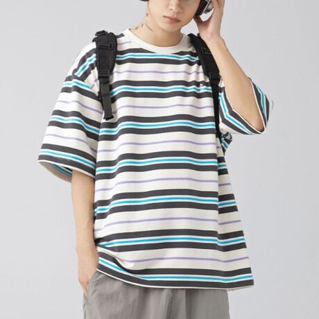 #マルチボーダー、#メンズTシャツ、#ゆるTシャツ