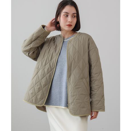 ふんわりとした中綿を包み込むキルティング素材を使用。軽さと暖かさを両立し、長時間着ても疲れにくいのが特長です。