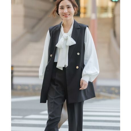 ちんと感とこなれた印象を兼ね備えた、ロング丈のジレ。