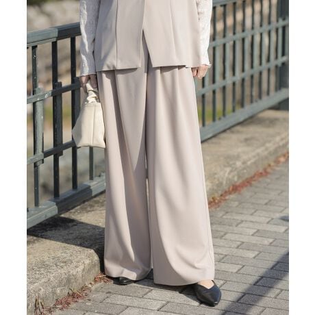 ゆとりのあるワイドシルエットでありながら、落ち感のある素材を使用することで広がりすぎず、すっきりとしたラインに。