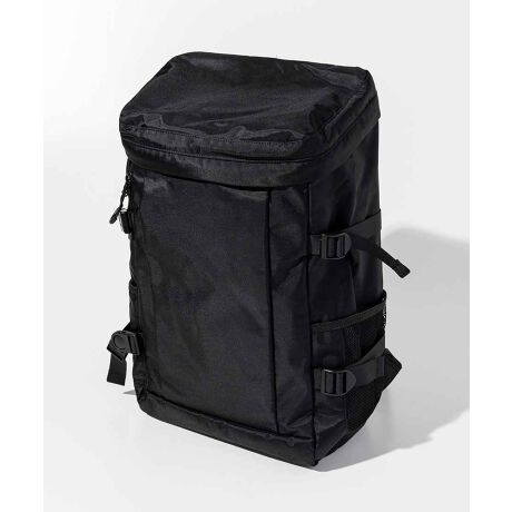 撥水加工を施した「コーティングポリエステルオックス」を使用した、タフで機能的なスクエア型リュック。