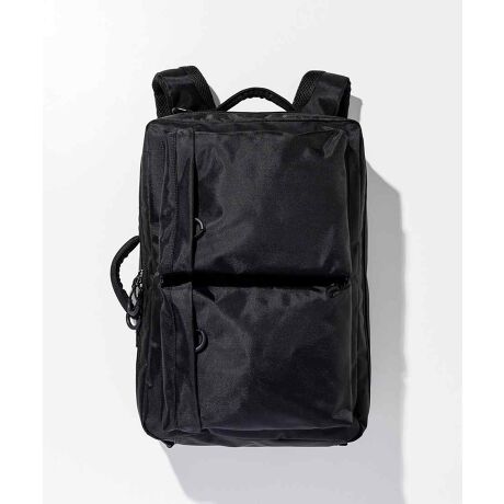 撥水加工を施した「コーティングポリエステルオックス」を使用した、機能性とスマートな印象を兼ね備えた2WAY仕様のバックパック。