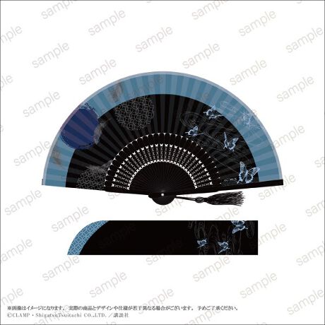 「xxxHOLiC」をイメージする蝶やキャラクターモチーフがデザインされた扇子。