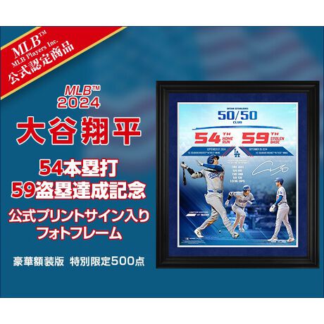 大谷翔平 54本塁打59盗塁達成記念 公式プリントサイン入りフォトフレーム