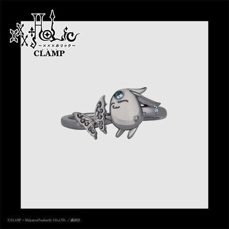 <モコナ=ラーグ=モドキ>と蝶がデザインされたリングには額の宝玉をイメージしたブルーパーズがきらりと輝くデザインに。