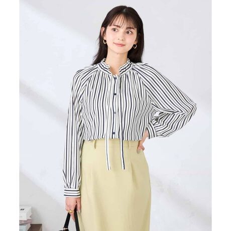 フリルネックボウタイブラウス