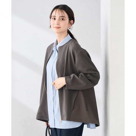 ・異素材使いがポイントのAラインのノーカラーブルゾン