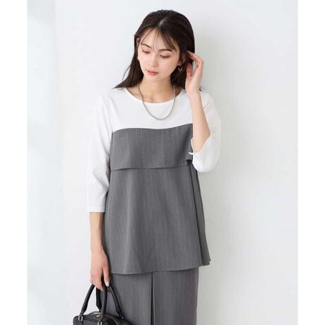 ピンストライプ生地とカットソーがドッキングされたビスチェトップス。