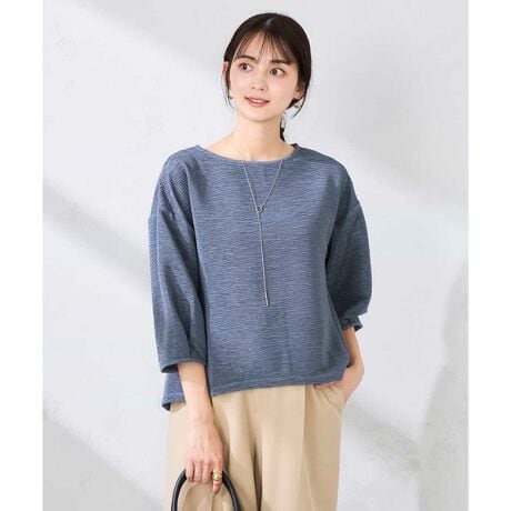 ほどよい光沢感と凹凸感がおしゃれな素材を使用した短丈トップス。
