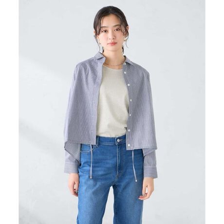 春らしい爽やかなカラーのストライプ柄ショート丈シャツです。