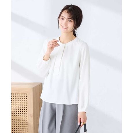 ボウタイは中にしまってプレーンなクルーネックブラウスとしても着こなし可能です。