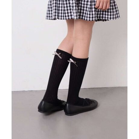 ・後ろについた長めリボンが大人かわいいハイソックス。