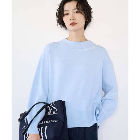 スウェットのような楽な着心地と、首元のロゴがポイントの着映えるニット