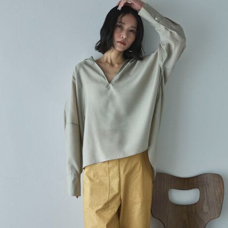・深めに開いたスキッパーで衿も抜きやすくすっきりした印象