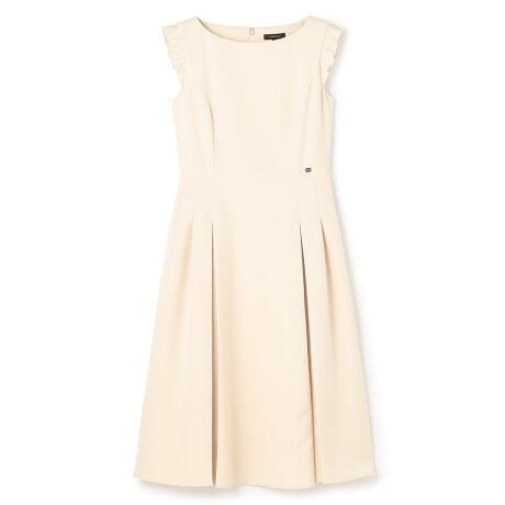 とても軽く柔らかな着心地で、一年を通してお召しいただけるドレスはタックをモチーフとして、スカートや袖部分に使用し、きちんと感とフェミニンな雰囲気を両立させたデザイン。また、肩のフリル風デザインがさりげなく華やぎを添え、腕まわりをすっきり見せてくれるのもポイント。