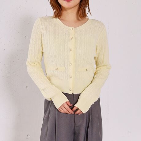 ・シンプルながらも編み柄の変化で、コーディネートの主役になる一枚。
