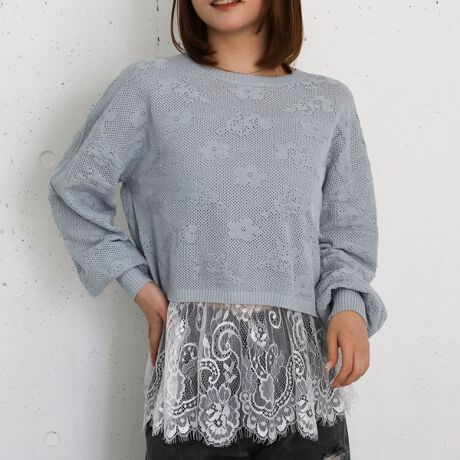 透かし編み花柄ニットプルオーバー
