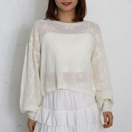 ・透かし編みと花柄デザインが着映えるニット