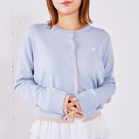 ・バイカラーでレイヤード風に仕上げた、着映えするカーディガン