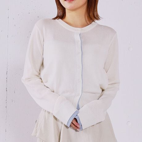 ・バイカラーでレイヤード風に仕上げた、着映えするカーディガン