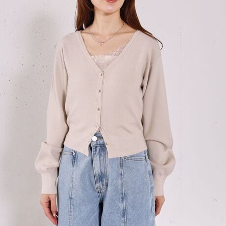 ・襟元のレースのインナーとカーディガンのセットアイテム