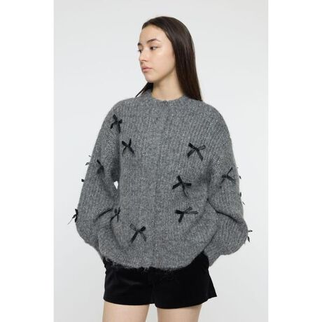 【RIBBON FANCY CARDIGAN / リボンファンシーカーディガン】■ポイントMOUSSY大人気のリボンニットから、カーディガン型が新登場!!ネイビーベースに同色リボンの新色も合わせて新登場。■ディテールノスタルジックな雰囲気漂う、毛足のあるファンシーなニットに、小さな手付リボンが飛び散った可愛さ満点のニットカーディガン。程よいルーズさと洗練されたカラーで大人が着れるニットに仕上げました。■スタイリングMOUSSYらしいデニム合わせはもちろん、今期はハーフパンツやミニマルなショートパンツにざっくり合わせるスタイリングもおすすめです。※本品は手作業でリボンを結んでつけているため個体差があります。また、甘編みニット商品の為、サイズが変化しやすくなっております。長時間のハンガーかけを避けて下さい。柔らかい風合いの糸を使用しています。着用していくうちに毛羽立ちやピリングが発生します。取り扱い表記の確認をお願いいたします。リボンは強い力を加えますと取れや引っ掛けが発生します。取り扱いに注意ください。■生地透け感:なし裏 地:なし伸縮性:なし光沢感:なし■商品のお気に入り登録お気に入りアイテムの再入荷・在庫1点などの通知を受け取ることができます。■ブランドのお気に入り登録新作アイテムの入荷や人気アイテムの再入荷、おすすめトピックスなど、いち早くブランドの情報を受け取ることができます。[注意事項]※弊社管理上のカラーを表記しており、タグのカラー表記と異なる記載となっている場合がございます。※商品画像の色味は、屋外や屋内の光の照射や角度により実物と色味が異なる場合がございます。※着用、お取り扱いの際は、アテンションタグをご確認ください。