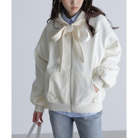 柔らかく肌なじみの良い裏毛のリボンディテールがアクセントになるフェミニンなジップパーカー。ゆったりとしたシルエットと、柔らかい裏起毛素材でウォーム感があり、重ね着にぴったりな1枚。程よく肉感もあるので、春はアウター代わりとしてロングシーズン活躍してくれます。ミニスカートやショートパンツなど、コンパクトなボトムス合わせでワンピ風に着るのもおすすめ。ボリュームのあるカーブパンツを使った、ボーイッシュな着こなしでもリボンディテールが映え、程よいガーリーなスタイルが楽しめます。※モデルの着用画像の場合、光の当たり具合により、実際の色味と異なって見えることがございます。色味は、商品単体の画像をご参照ください。