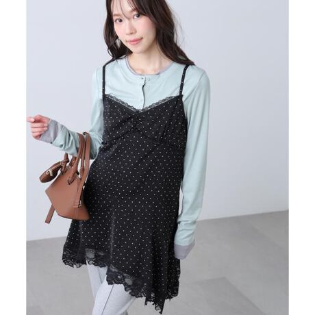 ※1315240107【イレヘムチュニックキャミワンピース】の同型商品となります。ページ下部、関連商品よりご確認いただけます。今季トレンドのランジェリームードを取り入れたイレヘムキャミワンピース。肉感がありつつ落ち感もあり、裾に動きをつけながらフレアがキレイに出る素材です。裾はイレギュラーヘムラインにし、工夫されたレースの配置ですっきりとした落ち感になっています。胸元には華奢なレーステープを使用。襟ぐりにはグログランテープを使い、中央にシャーリングを寄せてランジェリー要素をプラス。胸下切り替えにちびフリルを挟んでポイントを作り、間延びしないようにしています。サイドファスナーで着脱、肩紐は長さ調節可能。ニットの中に着ると裾フレアが出るのでスカートをレイヤードしているようなトレンドスタイルが完成。ワンショルルーズニット(商品番号1316170131)合わせもおすすめです。コーデにプラスワンしやすい無地オフとオフベースドット柄の2色展開です。※モデルの着用画像の場合、光の当たり具合により実際の色味と異なって見えることがございます。色味は商品単体の画像をご参照ください。