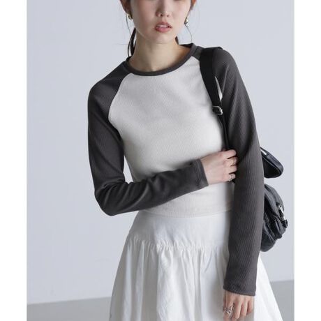 今季トレンドのコンパクトサイズのラグランカットソー。地厚なリブカットソー生地を使用、今から取り入れやすいです。目の詰まった生地なのでダレ感がなく、キレイなシルエットがでます。ラグランの角度やサイズに拘り、肩が華奢に見えるバランスになっています。落ち着いたトーンの配色なので着やすく、シンプルコーデに合わせるだけでトレンドスタイルが完成。コンパクトなのでキャミワンピースのインナーとしてもおすすめです。※モデルの着用画像の場合、光の当たり具合により、実際の色味と異なって見えることがございます。色味は、商品単体の画像をご参照ください。