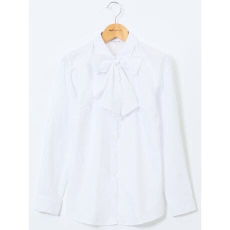 リボンが取り外しできる長袖シャツです。大振りのリボンで華やかに、 取り外してレギュラカラーでシンプルに。その日の気分やコーディネートに応じて二通りの着こなしが楽しめます。