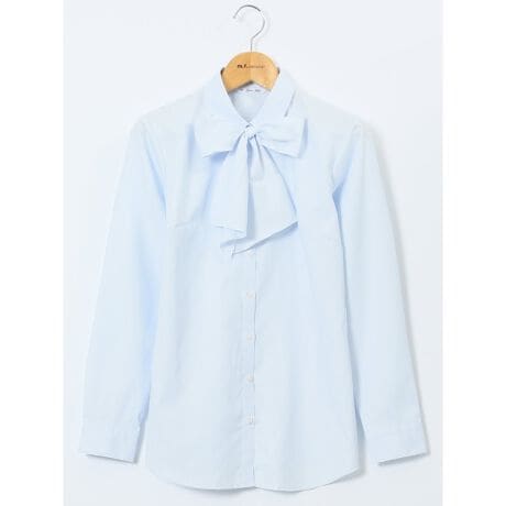 リボンが取り外しできる長袖シャツです。大振りのリボンで華やかに、 取り外してレギュラカラーでシンプルに。その日の気分やコーディネートに応じて二通りの着こなしが楽しめます。