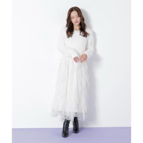 縦に流れるようなラッフルデザインが印象的なチュールスカート。ふんわりとしたチュールの重なりが軽やかに揺れて、華やかな存在感を演出します。左ファスナー付き、後ろウエストはゴム仕様でフィット。シンプルなトップスと合わせるだけで主役級のスタイリングが楽しめます。※撮影時照明の関係により、色味が違って見える場合がございます。またパソコン・スマートフォンなどの環境により、若干製品と画像のカラーが異なる場合もございます。予めご了承ください。商品の色味は、商品単品画像をご参照下さい。※商品画像はサンプルのため、色味やサイズ等の仕様に変更がある場合がございますので、予めご了承ください。
